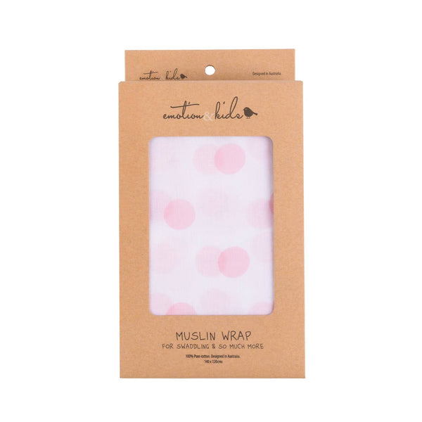 This beautiful pink spot muslin wrap is ideal for babies, whether it’s for swaddling, shading, or privacy when feeding.